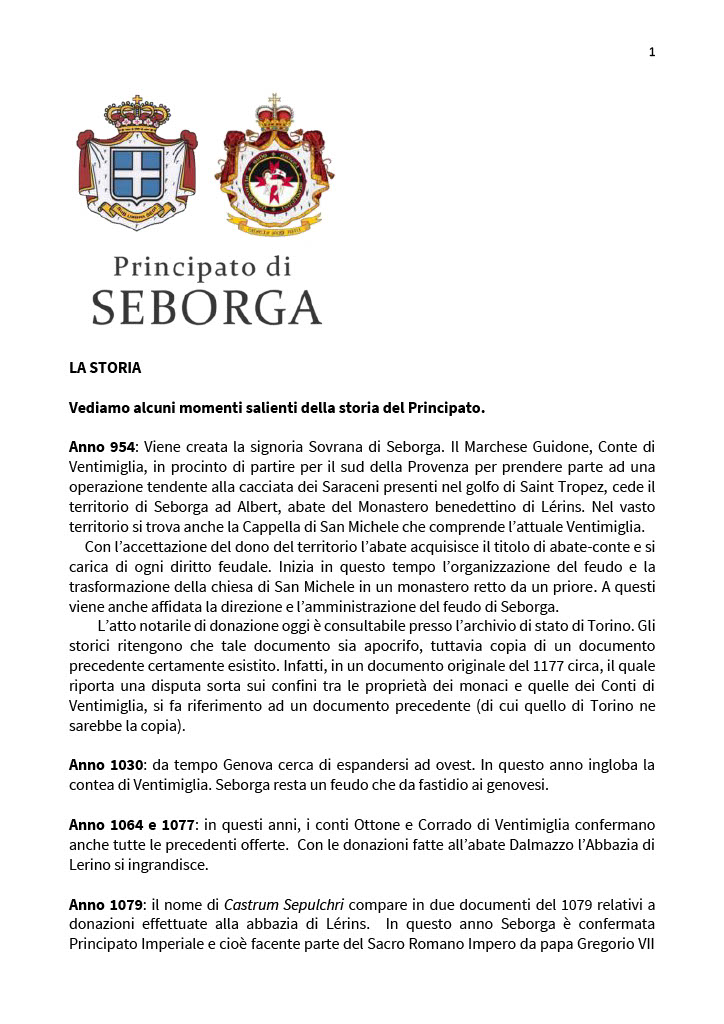BREVE STORIA DEL PRINCIPATO DI SEBORGA