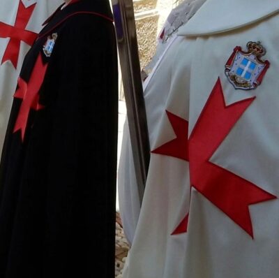 Dopo questa premessa, va aggiunto che sul sito www.principatodiseborga.com è visibile (vedi qui a sinistra) una fotografia nella quale la rossa croce patente del VOSS si trova posta su un mantello bianco e su uno nero unitamente ad un simbolo del Principato. Questi strani mantelli nulla hanno a che fare con i mantelli tradizionali e originali dei Cavalieri Bianchi.